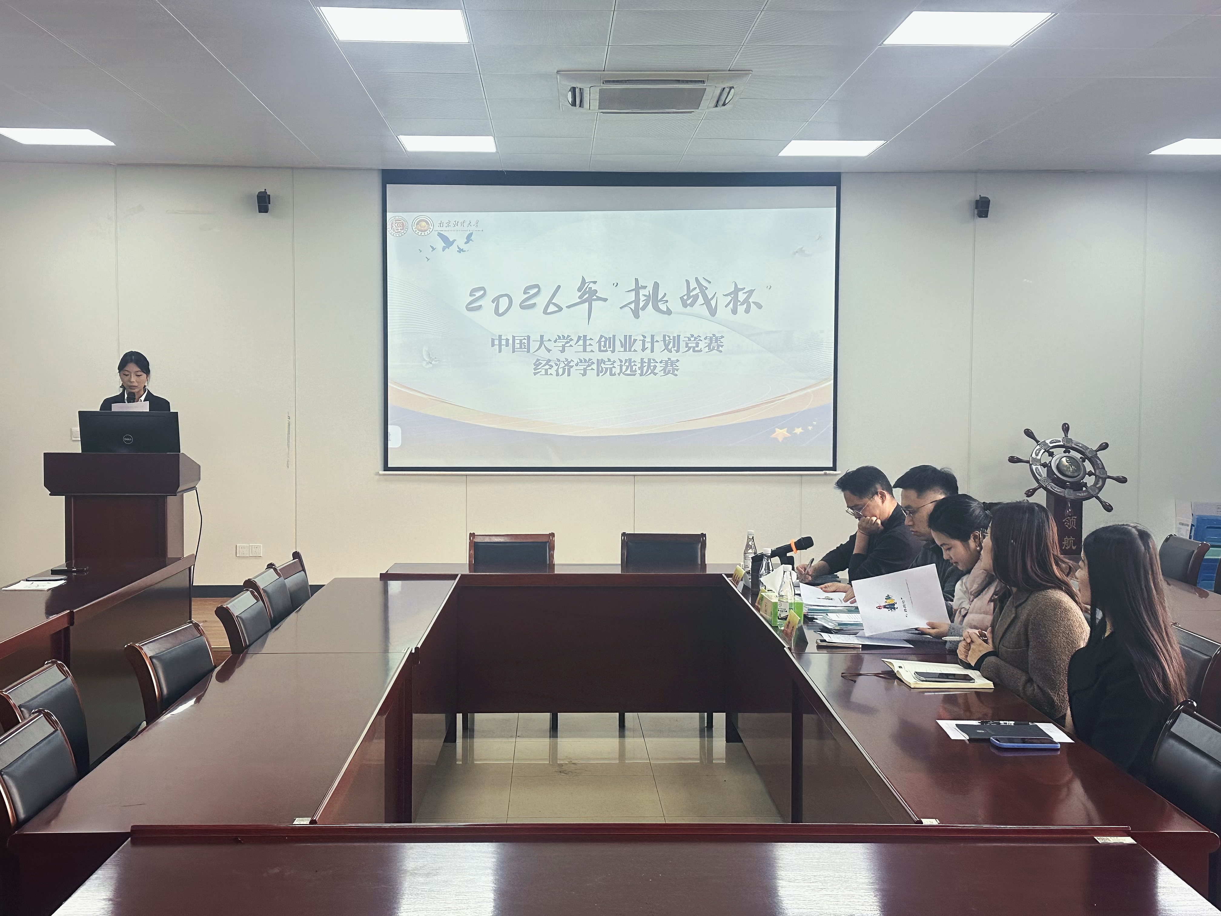 12月10日下午,我院于德经楼307举办了2026年“挑战杯”中国大学生创业计划竞赛(“小挑”)院级选拔赛。本次选拔赛由经济学院李庆海、陈杰、邵玮三位老师担任评委,学院党委副书记贾亦璞、团委相关人员、“小挑”项目指导老师以及学生团队到场观摩。